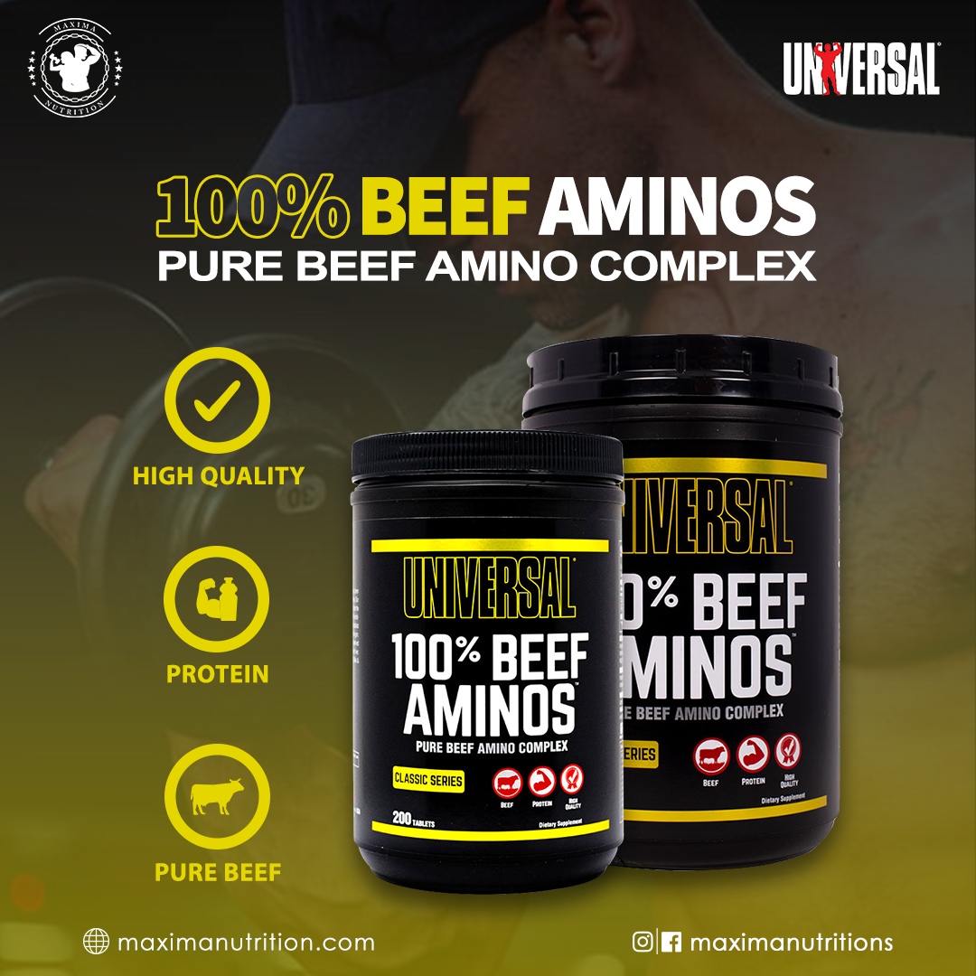 استفاده از آمینو بیف یونیورسال Universal Beef Aminos یک راه حل عالی برای استفاده از تمام مزایای گوشت گاو است بدون اینکه درگیر معایبی مانند محتوای چربی بالا شد.