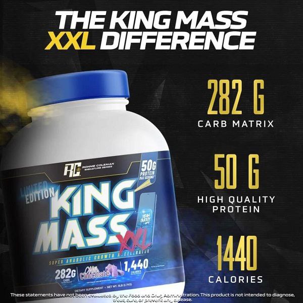 کینگ مس ایکس ایکس ال رونی کلمن Ronnie Coleman King Mass XXL یکی از میلک شیک هایی است که یک منبع غنی از پروتئین مورد نیاز برای عضلات می باشد و به عضلات شما کمک می کند تا در حالت آنابولیک باقی بماند. این محصول به شما کمک می کند تا کالری مناسب و سالمی را که برای بدن شما لازم است فراهم آورد. توده عضلات را برای شما ایجاد می کند و به شما کمک می کند تا خطر آسیب ناشی از جلسات سخت بعد از تمرین را کاهش دهید.