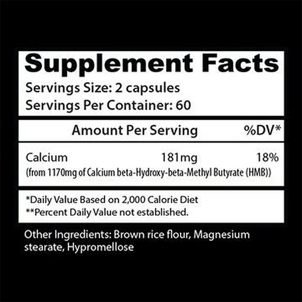 این مکمل حاوی 181 میلی گرم کلسیم (18 درصد) از 1170 میلی گرم کلسیم بتا هیدروکسی بتا متیل بوتیرات (اچ ام بی) می باشد.