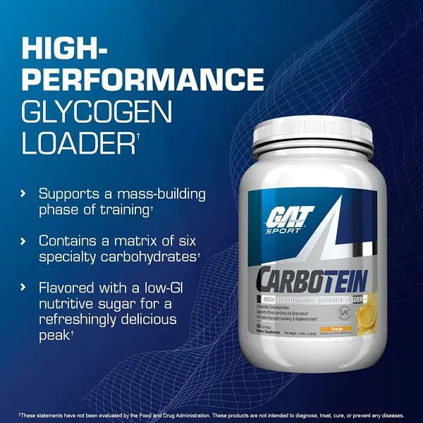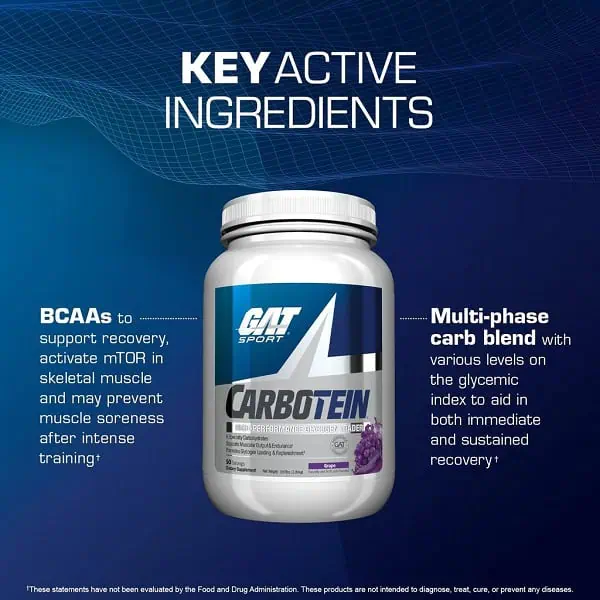 کربوتین کربوهیدرات گت اسپرت GAT SPORT CARBOTEIN یک فرمول کربوهیدرات پیشرفته برای بارگیری گلیکوژن است که استفاده سریع از انرژی را همراه با ریکاوری بعد از تمرین ممکن می سازد. CARBOTEIN به طور منحصر به فردی 6 کربوهیدرات سریع الاثر و ویژه را با آمینو اسیدهای شاخه دار به همراه چندین الکترولیت و واسطه های چرخه اسید سیتریک ترکیب می کند.
