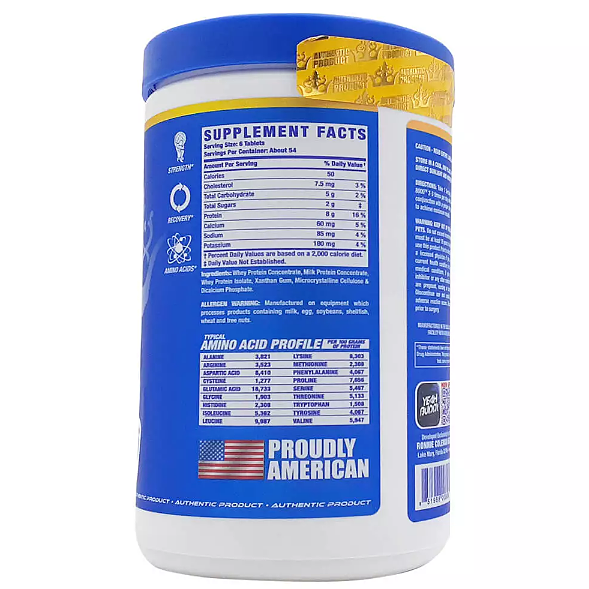 هر قرص از مکمل آمینو 8000 رونی کلمن حاوی پروتئین وی کنسانتره ، پروتئین شیر کنسانتره و پروتئین وی ایزوله است که 8 گرم پروتئین و 2.6 گرم BCAA در هر وعده ارائه می کند .