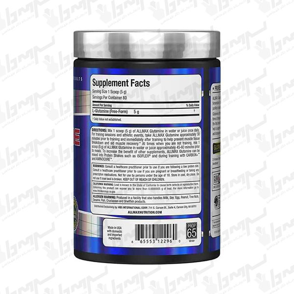 گلوتامین آلمکس (Allmax Essentials Glutamine) یک مکمل ضروری برای هر ورزشکاری است که به صورت پودر خالص ۴۰۰ گرمی عرضه میشود. گلوتامین فراوانترین آمینو اسید موجود در بافت عضلانی است و در زمان استرس بدنی شدید، مانند تمرینات سنگین، سطح آن به شدت کاهش مییابد.