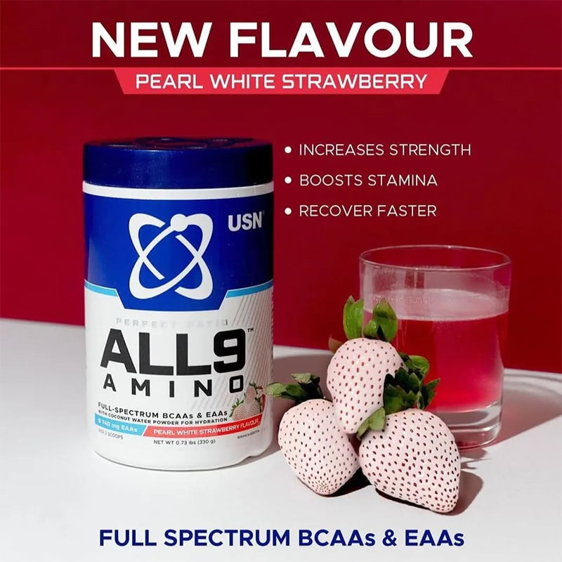 ALL9 AMINO یو اس ان: طیف کامل آمینو اسیدهای ضروری برای ریکاوری، قدرت و هیدراسیون!